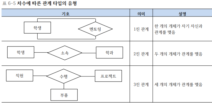 -> 차수에 따른 분류: 관계 집합이 주어졌을 때 거기에 참가하는 개체 타입의 수를 차수라고 한다.