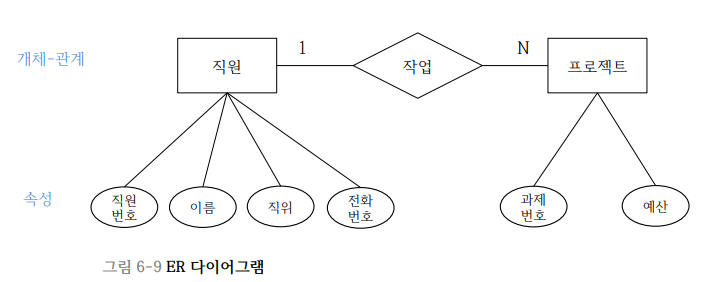 - ER 다이어그램: 개체 사이의 연관성 설명.
