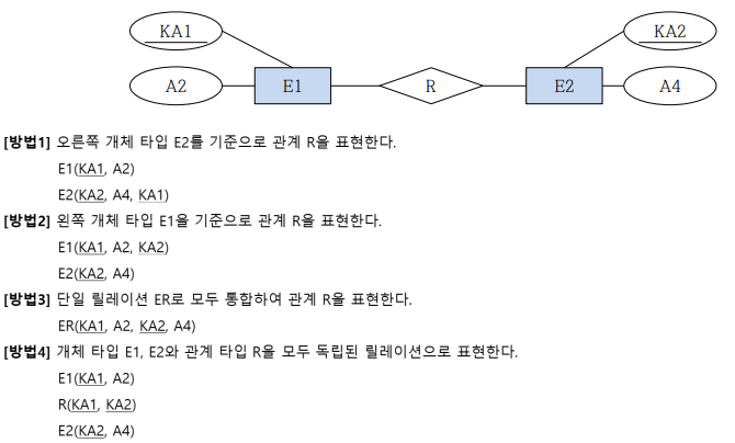 1) 모든 관계는 독립적인 릴레이션으로 변환 가능.