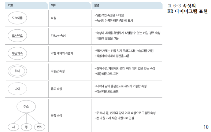 이때, 관계에도 속성이 달릴 수 있다. 1번의 그림에서 주문일자는 중요한 정보는 아니지만 고객과 도서라는 객체가 만나서 주문이라는 관계를 형성했을 때만 주문일자는 중요한 의미를 가지면서 속성으로 붙게 된다. 즉, 관계도 속성 보유가 가능하다.