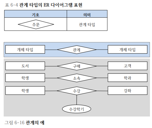 도서외 고객 사이의 구매라는 관계, 학생과 학과 사이에 소속이라는 관계 같은 관계 표현.