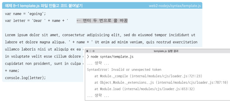 엔터 두 번으로 줄을 바꾸면 에러가 발생한다.
