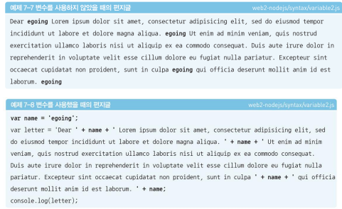 변수 또한 쉽게 가져다가 사용할 수 있다. (+로 불필요하게 연결할 필요 없다.)