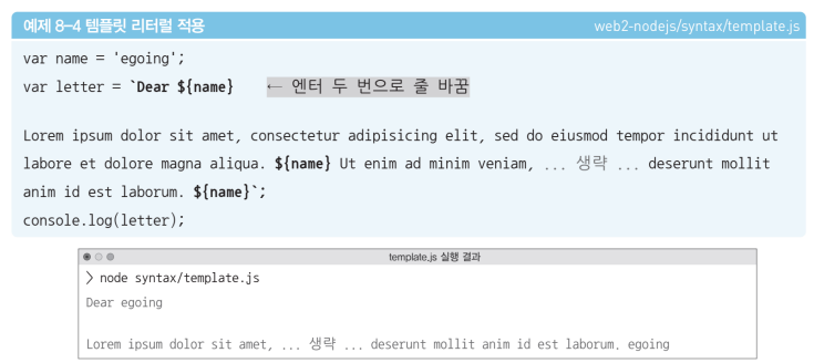 템플릿 리터럴 - 문자열 처리 관련해서 백팁을 사용.