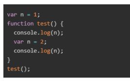 test()을 실행하기 전에 사용할 변수들을 호이스팅한다. 위쪽으로 var n; 할당이 끌어올려진다. n=2;가 남겨진다.
